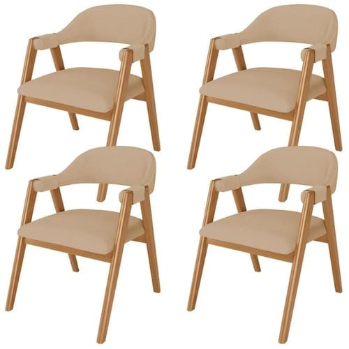 O Kit 04 Cadeiras de Jantar e Estar Living Estofada Nadja, das Lyam Decor, é a escolha perfeita para criar uma sala de jantar moderna e acolhedora. Com seu design curvo e pés de madeira maciça envernizada, essa cadeira estofada traz elegância e sofisticação ao ambiente. Além disso, é tapeçada com espuma d-26, o que proporciona um conforto excepcional, permitindo que você desfrute de momentos incríveis à mesa. Já o design orgânico combina beleza e modernidade, tornando-a uma peça única, enquanto os braços adicionam um toque extra de conforto e estilo. A Cadeira Nadja é o equilíbrio perfeito entre funcionalidade e design, uma vez que pode facilmente ser utilizada em diversos ambientes, como espaços comerciais, recepção de hotel e eventos, até como poltrona para sala de estar. Adicione esse elemento indispensável à sua decoração e transforme qualquer ambiente em um lugar especial. Não perca a oportunidade de adquirir essa cadeira de jantar que vai encantar a todos.