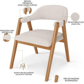 O Kit 04 Cadeiras de Jantar e Estar Living Estofada Nadja, das Lyam Decor, é a escolha perfeita para criar uma sala de jantar moderna e acolhedora. Com seu design curvo e pés de madeira maciça envernizada, essa cadeira estofada traz elegância e sofisticação ao ambiente. Além disso, é tapeçada com espuma d-26, o que proporciona um conforto excepcional, permitindo que você desfrute de momentos incríveis à mesa. Já o design orgânico combina beleza e modernidade, tornando-a uma peça única, enquanto os braços adicionam um toque extra de conforto e estilo.