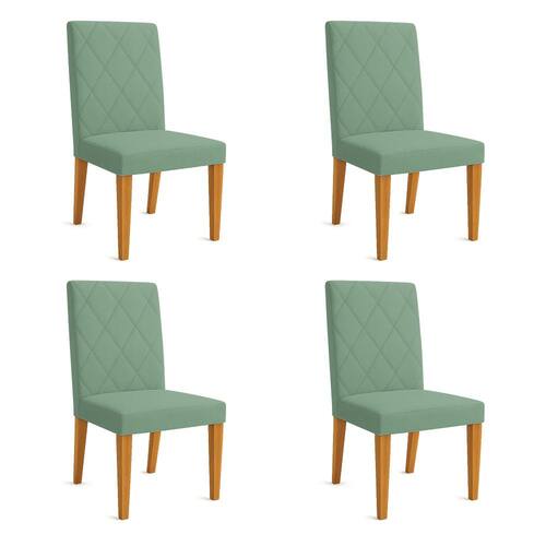 Kit 04 Cadeiras de Jantar Estofada Siena Linho Verde Oliva Pés Trapézio Castanho - Pallazio