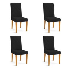 Kit 04 Cadeiras de Jantar Estofada Siena Veludo Preto Pés Trapézio Castanho - Pallazio