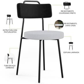 Amplamente moderna, dispondo de muito realce e design singular, o Kit 04 Cadeiras Decorativas Estofada Para Sala Jantar Barcelona L02 Couríssimo Preto Linho Cinza - Lyam vem com a personalidade e elegância que sua decoração merece! Estruturada em aço carbono, contrasta lindamente com o encosto e assento estofados, cabe mencionar ainda seu revestimento em Couríssimo e linho, é confeccionada por materiais de excelente qualidade, extremamente resistentes e aconchegantes.