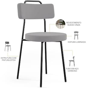 Amplamente moderna, dispondo de muito realce e design singular, o Kit 04 Cadeiras Decorativas Estofadas Para Sala De Jantar Barcelona L02 Suede Cinza - Lyam Decor vem com a personalidade e elegância que sua decoração merece! Estruturada em aço carbono, contrasta lindamente com o encosto e assento estofados, cabe mencionar ainda seu revestimento em Couríssimo, é confeccionada por materiais de excelente qualidade, extremamente resistentes e aconchegantes.