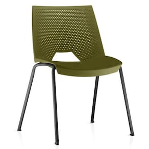 Encosto e assento monobloco, com material injetado em Polipropileno (PP), na tonalidade Verde.