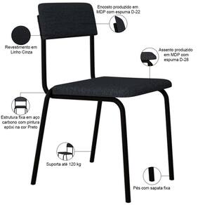 Largura da cadeira: 47,5 cm | Espessura do assento: na | Altura do assento a partir do solo: 47,5 cm | Material: Estrutura em Aço e MDP, Revestimento em Linho | Model: Sense | Cor da estrutura da cadeira: Preto | ProductWarranty: 90 dias após o recebimento do produto | Tempo de montagem: na | ProductHeight: 243 cm | ProductInstructions: Produto para uso em ambiente interno, nao devendo ficar exposto ao sol, calor e umidade excessivos. | ProductWeight: 21,6 Kg | Desenho do tecido: Liso | Cor do assento: Cinza | É cadeira de balanço: Não | Material do estofamento: Aço, MDP e Linho | Altura da cadeira: 81 cm | Profundidade da cadeira: 51 cm | Profundidade do assento: 40 cm | Largura do assento: NA | Firmeza: Firme | Peso máximo suportado: 120 kg | É dobrável: Não | É empilhável: Não | Requer montagem: Não | Cor: Cinza | Color: Cinza | ColorFamily: Cinza | ColorSimple: Cinza | ColorSupplier: Cinza | Cor do estofamento: Cinza | Fabricante: Lyam Decor | MaterialFamily: Aço, MDP e Linho | OriginCountry: Brasil | OriginState: PR | ProductContents: 04 Cadeiras | SizeDescription: Altura: 243 cm x Largura: 48 cm x Profundidade: 51 cm | SupplierSimpleName: Kit 04 Cadeiras Estofada Para Sala de Jantar Sense Preto C01 Linho Cinza - Lyam Decor | ProductLength: 51 cm | ProductWidth: 48 cm