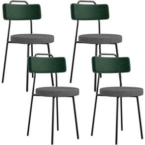Amplamente moderna, dispondo de muito realce e design singular, o Kit 04 Cadeiras Decorativas Estofada Para Sala Jantar Barcelona L02 Facto Verde Musgo Linho Cinza Escuro - Lyam vem com a personalidade e elegância que sua decoração merece! Estruturada em aço carbono, contrasta lindamente com o encosto e assento estofados, cabe mencionar ainda seu revestimento em Couríssimo e linho, é confeccionada por materiais de excelente qualidade, extremamente resistentes e aconchegantes.
