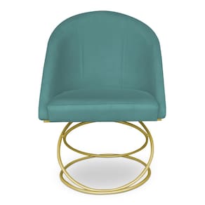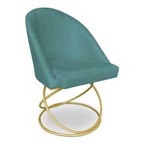 Kit 04 Cadeiras Poltrona de Jantar Bela Suede Azul Turquesa Base Metálica Luxo Dourado - Pallazio