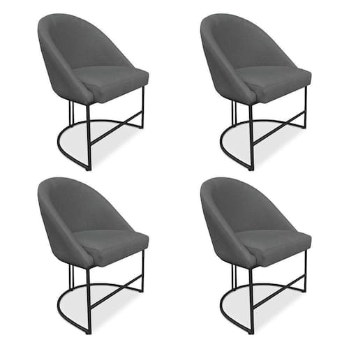 Kit 04 Cadeiras Poltrona De Jantar Bela Suede Base Metálica Industrial Preto - Pallazio Cor Grafite