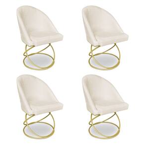 Kit 04 Cadeiras Poltrona de Jantar Bela Veludo Base Metálica Luxo Dourado - Pallazio - Bege