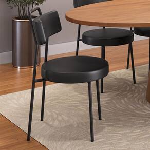 Seu encosto e assento estofados com espuma laminada garantem maior conforto mesmo em longos períodos de uso. A estrutura fixa em aço carbono com pintura epóxi preta confere durabilidade, resistência e um visual sofisticado que combina com diversos estilos de decoração.