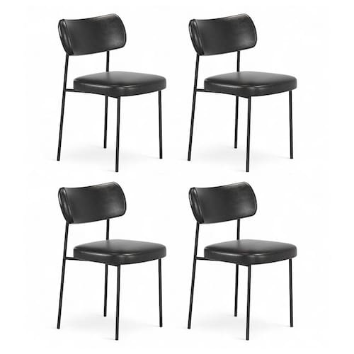 Seu encosto e assento estofados com espuma laminada garantem maior conforto mesmo em longos períodos de uso. A estrutura fixa em aço carbono com pintura epóxi preta confere durabilidade, resistência e um visual sofisticado que combina com diversos estilos de decoração.