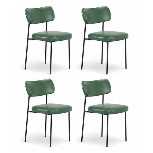 Seu encosto e assento estofados com espuma laminada garantem maior conforto mesmo em longos períodos de uso. A estrutura fixa em aço carbono com pintura epóxi preta confere durabilidade, resistência e um visual sofisticado que combina com diversos estilos de decoração.