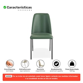 Seu encosto estofado ergonômico oferece apoio ideal para a coluna, tornando cada momento à mesa ainda mais confortável. O assento é revestido em couríssimo, material nobre que agrega charme e praticidade, além de trazer uma sensação agradável ao toque.