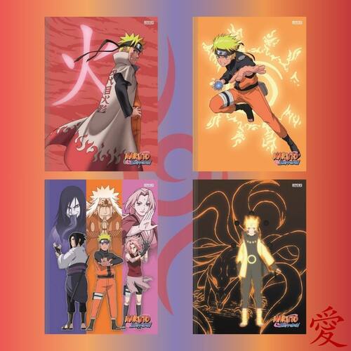 Kit 04 Caderno Brochurão Grande Costurado Anime Naruto 48 Folhas Animativa