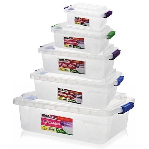 Kit 04 Caixas Organizadoras Com Travas De 1,5/2,5/5/10 L Super Kit com 5 Caixas Organizadoras ErcaPlast em 5 tamanhos diferentes Caixas translucida com alças coloridas. Ideal para usar na cozinha, ir ao freezer, lava-louças ou micro-ondas. Organiza e guarda tudo o que você imaginar. Conteúdo do kit: 01 Caixa Organizadora 1,1 Litros 17x14x6cm 01 Caixa Organizadora 2,5 Litros 22x16x8cm 01 Caixa Organizadora 5 Litros 28x17x10cm 01 Caixa Organizadora 10 Litros 34x27x11cm 01 Caixa Organizadora 17 Litros 42x33x12,5cm Ean: 7898502713190