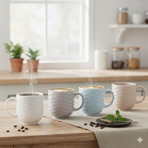 KIT 04 CANECAS ONDAS NAS CORES AZUL VINTAGE, CINZA, CREME E BRANCA