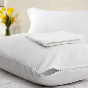 A capa protetora para travesseiro plooma é confeccionada em tecido 100% algodão.