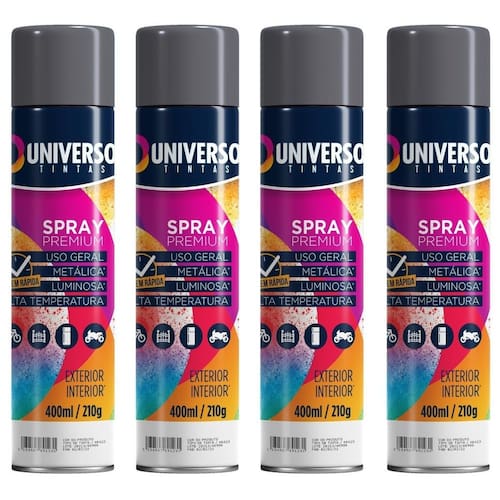 Tinta Spray 400ml Cinza Grafite Uso Geral em Aço Ferro Couro Gesso Cerâmica A Tinta Spray 400ml Cinza Grafite Uso Geral é a solução prática para renovar superfícies de metal, gesso, couro e cerâmica. Ideal para dar vida nova a bicicletas, móveis, eletrodomésticos e objetos em geral, garantindo um acabamento moderno e duradouro. Com fórmula de alta qualidade, oferece excelente aderência e acabamento Brilhante, além de resistência superior contra desgastes do dia a dia. Sua cobertura uniforme realça os detalhes e proporciona um resultado em poucas camadas. Prática e fácil de aplicar, a tinta spray seca ao toque em apenas 15 minutos, permitindo agilidade nos trabalhos e economia de tempo. O rendimento de até 2 m por demão garante maior aproveitamento do produto e ótimo custo-benefício. Diferenciais: Acabamento Brilhante com ótima aderência Alta durabilidade e resistência em ambientes internos e externos Secagem rápida e aplicação prática com cobertura uniforme Especificações TÉCNICAS: Volume: 400ml Rendimento: até 2 m por demão Superfícies indicadas: metal, gesso, couro e cerâmica Secagem: toque em 15 minutos Acabamento: Brilhante Recomendação: uso de primer para melhor desempenho Itens INCLUSOS: 04 Tintas Spray 400ml Cinza Grafite Uso Geral Marca: Não Informado