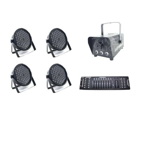 Kit 04 par leds 3 em 1 + máquina de fumaça 600w + mesa dmx 512