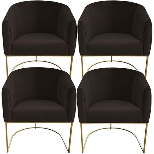 Kit 04 Poltrona Julia Com Base De Ferro Sala De Estar Escritório Recepção Clinica Suede Marrom D`classe Decor
