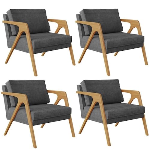O Kit 04 Poltrona Decorativa Para Sala Pietra Estrutura De Madeira L02 Linho Cinza Escuro - Lyam Decor se sobressai em qualquer ambiente, permite diversas combinações harmônicas e ainda proporciona muito aconchego. A mistura da estrutura de madeira com o revestimento convencional dela, somados ao seu ar geométrico garantem extrema idade e personalidade para sua decoração.