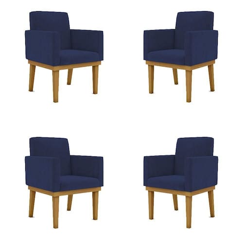 Kit 04 Poltronas Decorativa Reforçada Mesa Cozinha Cor:azul Marinho