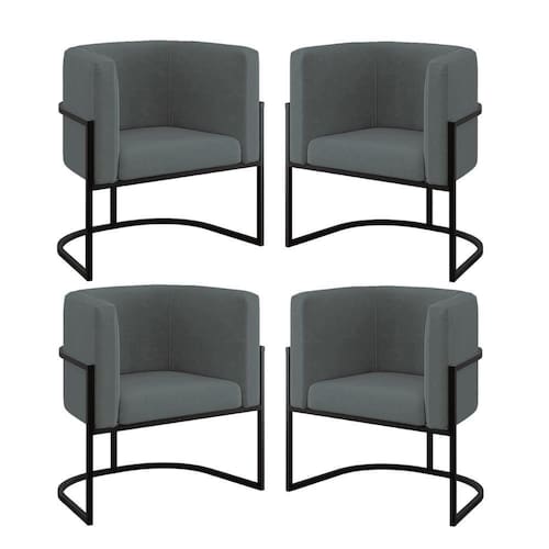 Kit 04 Poltronas Lua Sala Decorativa Base De Ferro Black Cinza - Preto