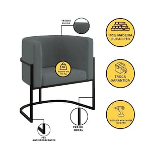 Kit 04 Poltronas Lua Sala Decorativa Base De Ferro Black Cor:cinza Cinza