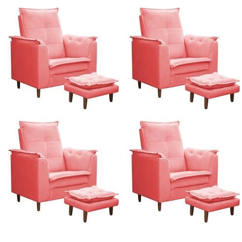 Kit 04 Poltronas Maria Para Amamentação E Descanso Com Puff Confortável Suede Rose Mabe Magazine - Rosa