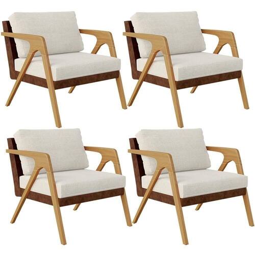 O Kit 04 Poltronas Decorativas Pietra L02 Couríssimo Marrom Linho Champagne - Lyam Decor se sobressai em qualquer ambiente, permite diversas combinações harmônicas e ainda proporciona muito aconchego para sua decoração! O link da estrutura de madeira com a composição de revestimentos em linho e couríssimo, somados ao seu design geométrico garantem extrema idade, além de expressar toda a elegância que ele possui.