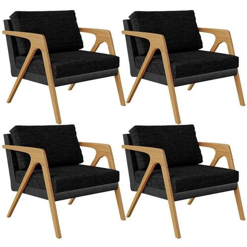 Kit 04 Poltronas Decorativas Sala Estar Pietra L02 Couríssimo Preto Linho Chumbo - Lyam Decor