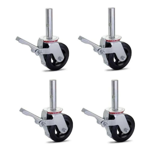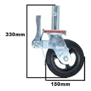 Rodizio para andaime colson com freio glef62bfr- nbr 6494 e nr 18características- antirrisco- base em aço- rodizio de borracha- roda em ferro fundido- com freio para travamentocapacidade- carga máxima por rodízio: 225 kg- o kit com 4 rodas suporta até 900 kg- para movimento, subtraia 30% da capacidade- não aconselhável movimentação em áreas irregulares com muito pesodados técnicoseixo: 32mmaltura do rodízio: 33cmdiâmetro da roda: 15cmlargura da roda: 4,5cmcomposição: borracha e ferro Marca: Colson Rodizios Ean: 1178001153854