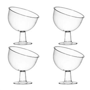 Taça inclinada ou Boca torta com pedestal, fabricada em poliestireno PS, moderna e resistente, utilizada e recomendada por profissionais de sucesso. Qualidade e sofisticação em suas festas e eventos, para servir sobremesas, salada de frutas, bolo gelado, gelatina, marshmallow, serviços de bomboniere, servir capsulas de café e muito mais.