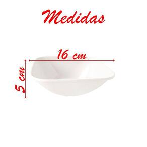 Tigela em melamina, um tipo de plástico duro com maior qualidade, durabilidade e resistência, lavagem e principalmente transporte, pois garante a segurança do usuário em possíveis quebras ou lascas. Essas características fazem da melamina um material bem popular, como muitos plásticos, a melamina não deve ser levada ao micro ondas, devido ao risco de danificar o material e o perigo de vazamento de toxinas para o alimento.