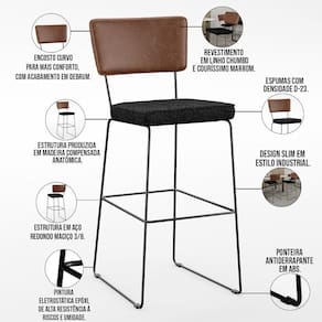 O espetáculo que é o Kit 05 Banqueta Alta Cozinha Sala Jantar Allana L02 Couríssimo Marrom Linho Chumbo - Lyam Decor vem para agregar ainda mais valor na decoração da sua casa. Sua estrutura em aço remete-nos ao estilo industrial que surgiu em Nova York no século XX, já o assento e encosto estofados trazem equilíbrio e conforto criando a combinação perfeita para o ambiente.
