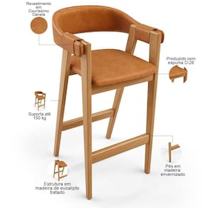 ColorSupplier: Whisky | Color: Marrom | ColorFamily: Marrom | ColorSimple: Marrom | Material: Estrutura em Madeira, Revestimento em Couro sintético e espuma | MaterialFamily: Madeira, couro sintético e espuma | Model: Nadja | OriginCountry: Nacional | OriginState: PR | ProductContents: 05 Banquetas | ProductHeight: 260 cm | ProductInstructions: Produto para uso em ambiente interno, nao devendo ficar exposto ao sol, calor e umidade excessivos. | ProductLength: 53 cm | ProductWarranty: 90 dias após o recebimento do produto | ProductWeight: 50 kg | ProductWidth: 52 cm | SizeDescription: Altura: 260 cm x Largura: 52 cm x Profundidade: 53 cm | SupplierSimpleName: Kit 05 Banquetas Alta Bar Cozinha Sala de Jantar Bar Nadja L02 Couríssimo Whisky - Lyam Decor