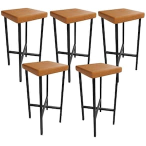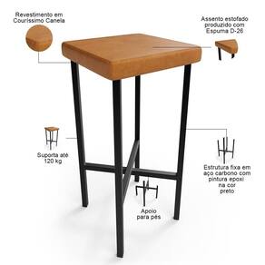 ProductContents: 05 Banquetas | Color: Laranja | ColorSupplier: Canela | OriginCountry: Nacional | ProductWarranty: 90 dias após o recebimento do produto | Material: Estrutura em Aço carbono, Revestimento em Couríssimo e espuma | ProductHeight: 146 cm | ProductLength: 70 cm | ColorSimple: Laranja | ColorFamily: Laranja | Model: Stella | MaterialFamily: Aço carbono, couro sintético e espuma | SupplierSimpleName: Kit 05 Banquetas Alta Bar Cozinha Sala De Jantar Preto Stella L02 Couríssimo Canela - Lyam Decor | ProductWidth: 35 cm | OriginState: PR | ProductInstructions: Produto para uso em ambiente interno, nao devendo ficar exposto ao sol, calor e umidade excessivos. | ProductWeight: 25 kg | SizeDescription: Altura: 146 cm x Largura: 35 cm x Profundidade: 70 cm