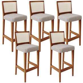 O Kit 05 Banqueta Alta Para Cozinha Sala de Jantar Fixa Telado Branco Zion L02 Linho Bege - Lyam Decor, possui um estilo rustico que faltava para deixar sua casa ainda mais clássica. Seu encosto com o detalhe de tela sintética na cor branca trazem ainda mais estilo e destaque para sua decoração, junto com assento estofado que proporciona horas de conforto. A estrutura e o apoio para os pés, são responsáveis por garantir maior à mesma.