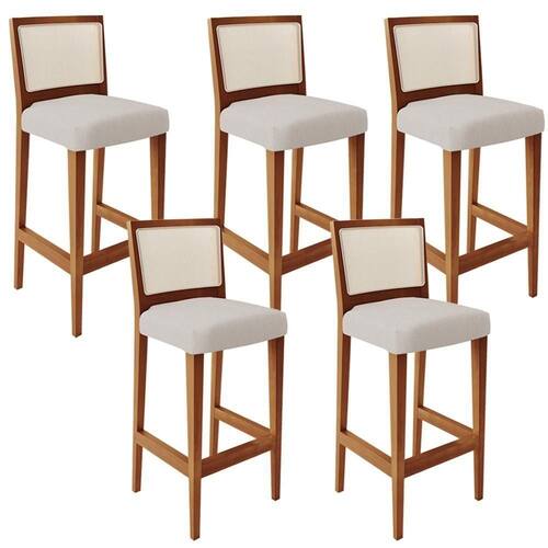 O Kit 05 Banquetas Alta Para Cozinha Sala de Jantar Fixa Telado Branco Zion L02 Linho Cru - Lyam Decor, possui um estilo rustico que faltava para deixar sua casa ainda mais clássica. Seu encosto com o detalhe de tela sintética na cor branca trazem ainda mais estilo e destaque para sua decoração, junto com assento estofado que proporciona horas de conforto. A estrutura e o apoio para os pés, são responsáveis por garantir maior à mesma.