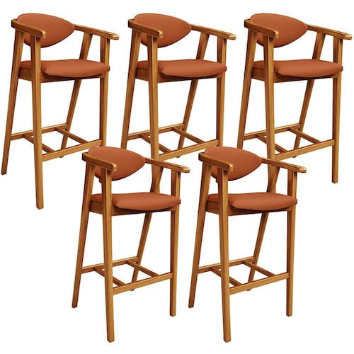 A melhor escolha para os momentos de confraternização no aconchego da sua casa, acaba de chegar! O Kit 05 Banquetas Alta Para Cozinha Sala de Jantar Fixa Cecília L02 Tecido Terracota - Lyam vem com a personalidade e elegância que sua decoração merece! É ideal desde refeições rápidas, até um Happy Hour com os amigos, família. Seu design único valoriza o ambiente, sem deixar pra trás a beleza e qualidade! Para deixar a sua área gourmet mais aconchegante, ela possui assento e encosto estofados, confeccionados com materiais de excelente qualidade, e extremamente resistentes.