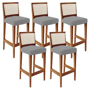 O Kit 05 Banquetas Alta Cozinha Sala Jantar Encosto Em Tela Branco Zion L02 Facto Cinza - Lyam Decor possui um estilo rústico que faltava para deixar sua casa ainda mais clássica. Seu encosto com o detalhe de tela sintética na cor branca trazem ainda mais estilo e destaque para sua decoração, junto com assento estofado que proporciona horas de conforto. A estrutura e o apoio para os pés, são responsáveis por garantir maior segurança à mesma.