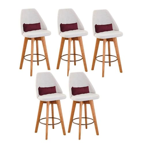 Kit 05 Banquetas Alta Maya Giratória Com Encosto Gourmet Linho Bege E Almofada Sintético Bordô - Aurora Line