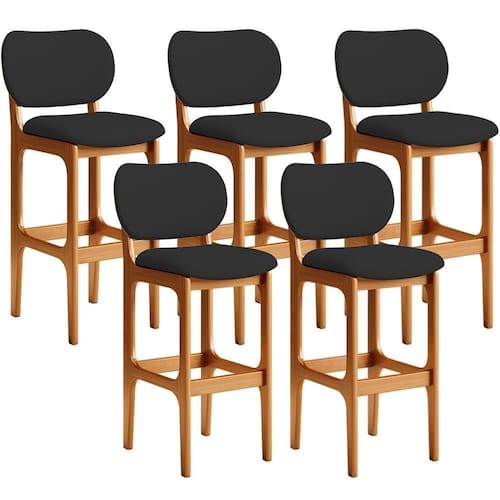 Amplamente sofisticado, o Kit 05 Banquetas Alta Para Cozinha Madeira Fixa Betta L02 Imbuia Facto Preto - Lyam Decor irá agregar ainda mais valor em sua decoração!! Sendo capaz de compor muito bem o ambiente, é produzido com materiais de excelente qualidade, a resistente estrutura em madeira de Taeda, na cor imbuia, conta com apoio para os pés (que garante maior segurança), além do assento e encosto estofados super confortáveis e convidativos, que são revestidos em tecido Facto , extremamente elegante.