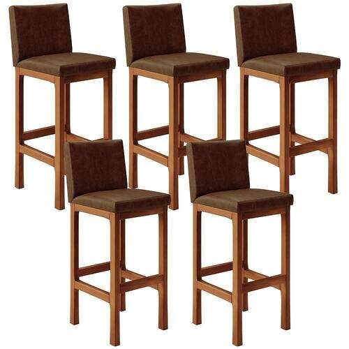 Conforto e estilo andam juntos sim! O Kit 05 Banquetas Altas Para Cozinha Sala De Jantar Fixa Alya L02 Couríssimo Marrom - Lyam Decor é o complemento que faltava para deixar sua casa ainda mais aconchegante. Seu encosto e assento estofados, centralizam o prazer de bons momentos compartilhados, trazendo ainda mais destaque para o conforto. A estrutura e o apoio para os pés, são responsáveis por garantir maior segurança à mesma.