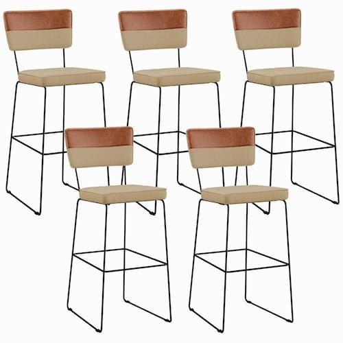 O espetáculo que é o Kit 05 Banquetas Altas Sala Jantar Allana L02 Faixa Couríssimo Camel Linho Bege Escuro - Lyam Decor vem para agregar ainda mais valor na decoração da sua casa. Sua estrutura em aço remete-nos ao estilo industrial que surgiu em Nova York no século XX, já o assento e encosto estofados trazem equilíbrio e conforto criando a combinação perfeita para o ambiente.