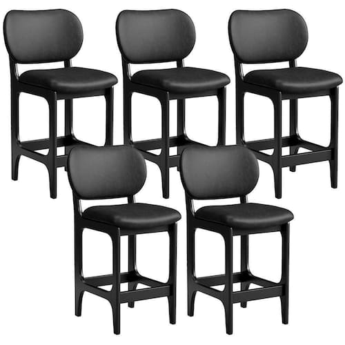 Amplamente sofisticada, o Kit 05 Banquetas Baixa Bar Cozinha Sala Jantar Betta L02 Couríssimo Preto - Lyam Decor irá agregar ainda mais valor em sua decoração!! Sendo capaz de compor muito bem o ambiente, é produzida com materiais de excelente qualidade, a resistente estrutura em madeira de Taeda, na cor Preto, conta com apoio para os pés (que garante maior ), além do assento e encosto estofados super confortáveis e convidativos, que são revestidos em tecido Couríssimo, composição extremamente elegante.