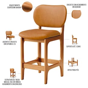 Amplamente sofisticada, o Kit 05 Banquetas Baixa Bar Cozinha Sala Jantar Betta L02 Imbuia Couríssimo Whisky - Lyam Decor irá agregar ainda mais valor em sua decoração!! Sendo capaz de compor muito bem o ambiente, é produzida com materiais de excelente qualidade, a resistente estrutura em madeira de Taeda, na cor imbuia, conta com apoio para os pés (que garante maior segurança), além do assento e encosto estofados super confortáveis e convidativos, que são revestidos em tecido Couríssimo, composição extremamente elegante.