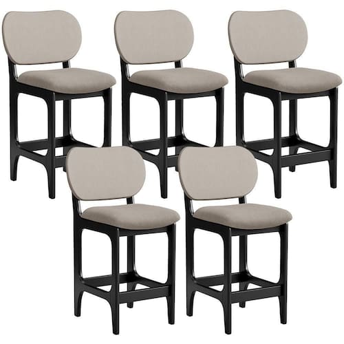 Amplamente sofisticada, o Kit 05 Banquetas Baixa Bar Cozinha Sala Jantar Betta L02 Linho Bege - Lyam Decor irá agregar ainda mais valor em sua decoração!! Sendo capaz de compor muito bem o ambiente, é produzida com materiais de excelente qualidade, a resistente estrutura em madeira de Taeda, na cor Preto, conta com apoio para os pés (que garante maior ), além do assento e encosto estofados super confortáveis e convidativos, que são revestidos em tecido Couríssimo, composição extremamente elegante.