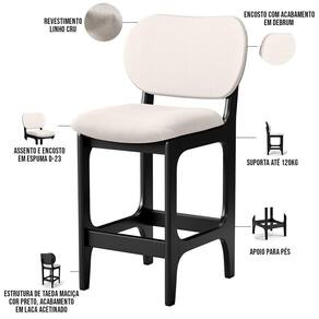 Amplamente sofisticada, o Kit 05 Banquetas Baixa Bar Cozinha Sala Jantar Betta L02 Linho Cru - Lyam Decor irá agregar ainda mais valor em sua decoração!! Sendo capaz de compor muito bem o ambiente, é produzida com materiais de excelente qualidade, a resistente estrutura em madeira de Taeda, na cor Preto, conta com apoio para os pés (que garante maior segurança), além do assento e encosto estofados super confortáveis e convidativos, que são revestidos em tecido Couríssimo, composição extremamente elegante.