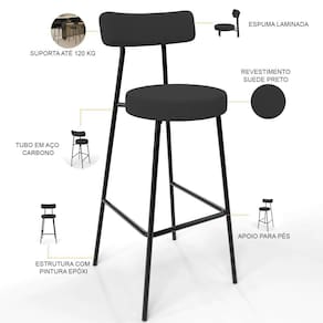 Amplamente moderna, dispondo de muito realce e design singular, a Banqueta Baixa Para Cozinha Sala De Jantar Bar Bancada Milão L02 Suede Preto - Lyam Decor vem com a personalidade e elegância que sua decoração merece! Estruturada em aço carbono, contrasta lindamente com o encosto e assento estofados, cabe mencionar ainda seu revestimento em Couríssimo, é confeccionada por materiais de excelente qualidade, extremamente resistentes e aconchegantes.