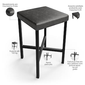 Color: Preto | ColorFamily: Preto | ColorSimple: Preto | ColorSupplier: Preto | Material: Estrutura de aço carbono, Revestimento em Couríssimo e espuma | MaterialFamily: Aço carbono, couro sintético e espuma | Model: Stella | OriginCountry: Nacional | OriginState: PR | ProductContents: 05 Banquetas | ProductHeight: 98 cm | ProductInstructions: Produto para uso em ambiente interno, nao devendo ficar exposto ao sol, calor e umidade excessivos. | ProductLength: 37 cm | ProductWarranty: 90 dias após o recebimento do produto | ProductWeight: 20 kg | ProductWidth: 39 cm | SizeDescription: Altura: 98 cm x Largura: 39 cm x Profundidade: 37 cm | SupplierSimpleName: Kit 05 Banquetas Baixa Bar Cozinha Sala De Jantar Preto Stella L02 Couríssimo Preto - Lyam Decor